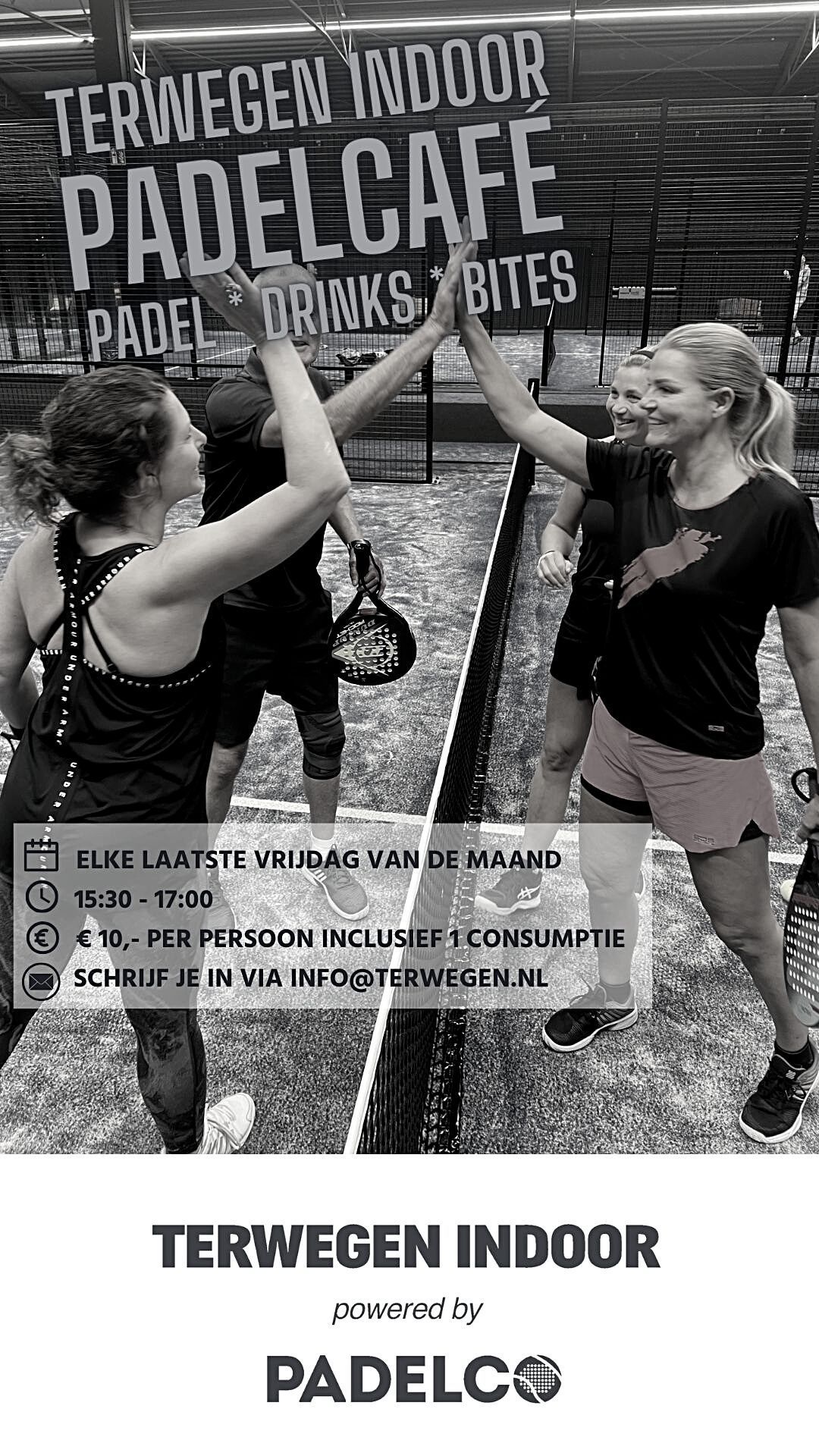 Ons ruime en gezellige indoor terras is de ideale locatie voor het organiseren van events, met heaters voor comfort, voldoende zitplekken, een DJ-booth en een prachtig uitzicht op de padelbanen. Of je nu een feest, toernooi, bedrijfs– of teamuitje of ander bijzonder event wilt organiseren, ons terras biedt de perfecte setting voor een onvergetelijke ervaring.